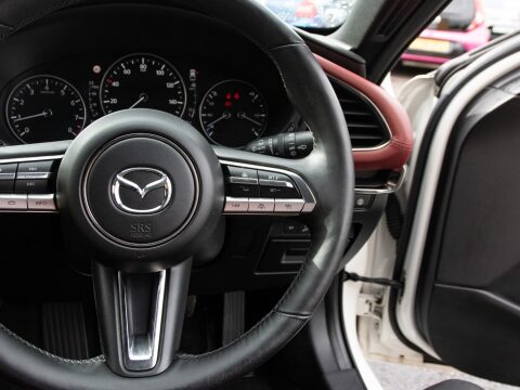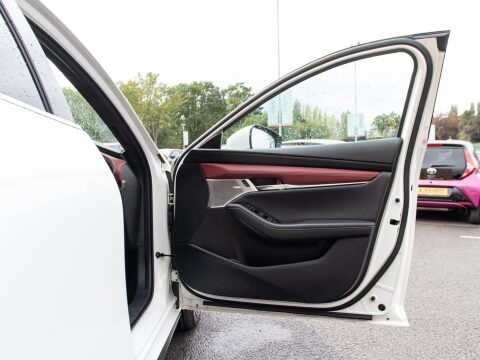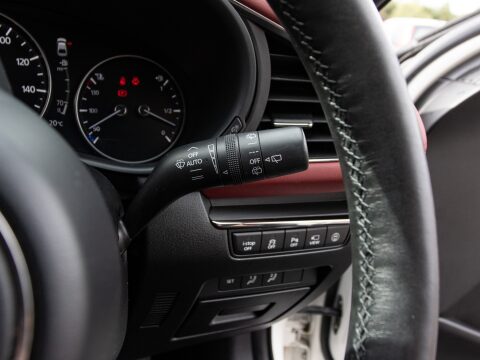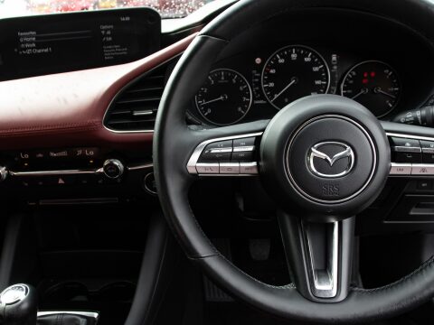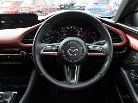 This 2021 Mazda3 e-SKYACTIV-X GT Sport Tech offers an exceptional blend of innovative technology and refined driving. As a Euro 6 compliant vehicle, it showcases Mazda's commitment to efficient motoring. This particular model, registered in 2021, features a responsive 2.0L petrol engine and is presented in the desirable GT Sport Tech trim. Notable features include adaptive LED headlights for optimal visibility, smart keyless entry for convenience, integrated Bluetooth for seamless connectivity, and a comprehensive Blind Spot Monitoring system with Rear Cross Traffic Alert for enhanced safety whilst the rear camera makes parking and manoeuvring a breeze.