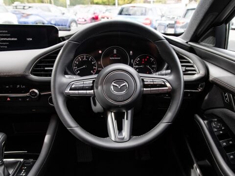 This 2021 Mazda 3 e SKYACTIV X Sport Lux presents a remarkable opportunity, having been cherished by just one owner and boasting exceptionally low mileage of 24286 miles for its age. Powered by a responsive 2.0 litre petrol engine and adhering to Euro 6 emission standards, this Sport Lux model offers a refined driving experience. You'll appreciate the convenience of Smart Keyless Entry, the advanced Mazda Radar Cruise Control for effortless journeys, and the clarity of LED headlights with auto levelling. Manoeuvring is made simple with a reversing camera and parking sensors.