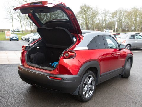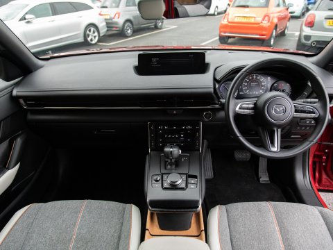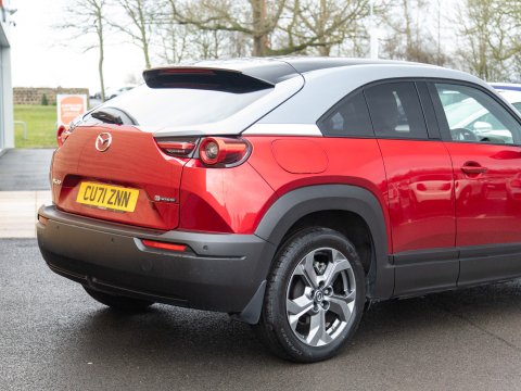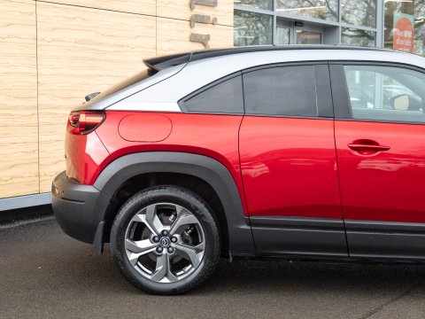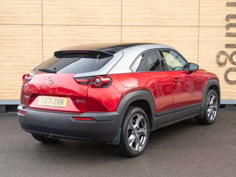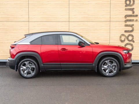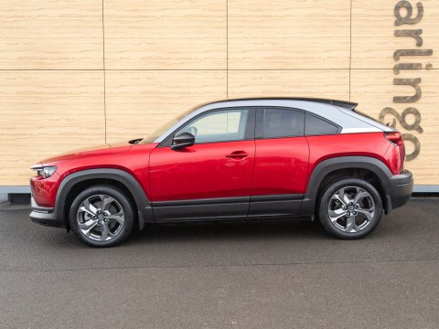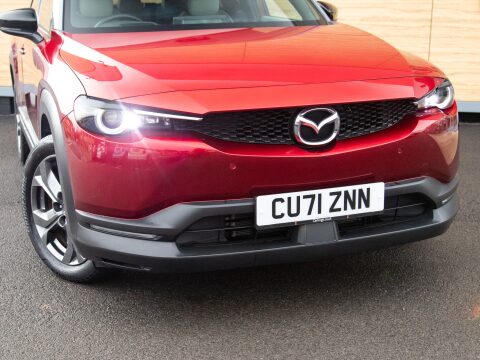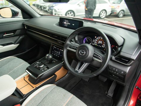 This 2021 Mazda MX-30 First Edition is a remarkable example, boasting exceptionally low mileage of just 8626 miles for its age. As an all electric model, it offers a smooth and quiet driving experience, powered by a 36 kWh battery that provides a maximum range of 124 miles. Recharging is convenient, with a full charge achievable at home in approximately 5 hours using a 7kW charger, and rapid public charging can take the battery from empty to 80% in as little as 48 minutes. This First Edition trim comes equipped with advanced safety and convenience features, including Emergency Lane Keeping with Blind Spot Assist, Adaptive Signature LED Headlights, front and rear parking sensors, heated front seats, Sat Nav and Mazda Radar Cruise Control with Intelligent Speed Assist.