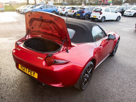 This 2017 Mazda MX-5 SKYACTIV-G SE-L Nav is a rare find, having been cherished by just one owner from new and boasting exceptionally low mileage of only 26,885 miles. This particular model is equipped with the efficient 1.5L Petrol Engine and meets Euro 6 emissions standards. Inside, you'll appreciate the convenience of Climate Control and integrated Bluetooth for seamless connectivity on the go. The exterior is enhanced by LED headlights with automatic levelling, ensuring excellent visibility. Sat Nav keeps you on track on those longer journeys.