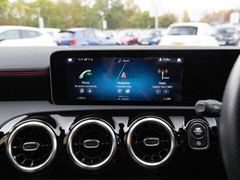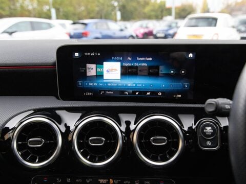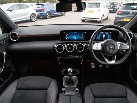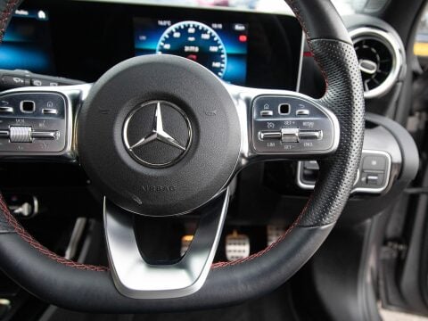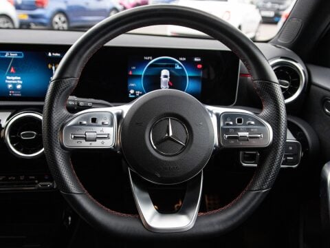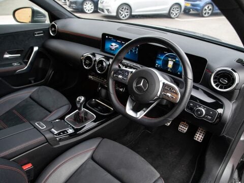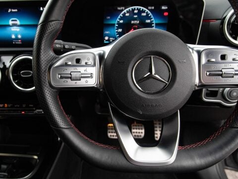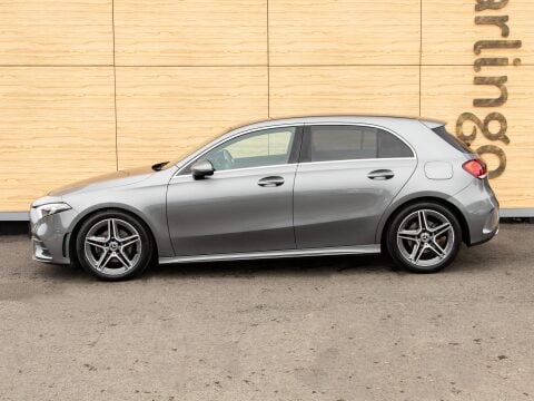 This 2019 Mercedes Benz A Class A200 AMG Line (Executive) presents an exceptional ownership proposition with its remarkably low mileage of just 19,844 miles and a single previous owner. Powered by an efficient 1.3 litre petrol engine meeting Euro 6 emissions standards, this model boasts the sporty AMG Line trim. Inside, you'll find a leather trimmed, 3 spoke multi function steering wheel with a flattened bottom and perforated grip areas, complemented by THERMOTRONIC luxury automatic climate control and heated front seats for personalised comfort. Experience convenience with the 180 degree reversing camera offering clear parking guidelines, and stay connected with the dual Bluetooth interface featuring two USB Type C ports. Automatic headlamp activation ensures optimal visibility, while Sat Nav keeps you on track on those longer journeys.