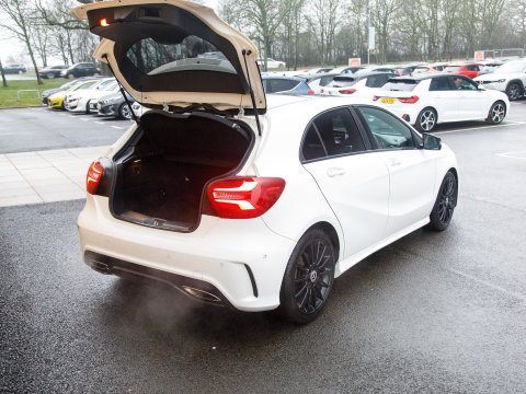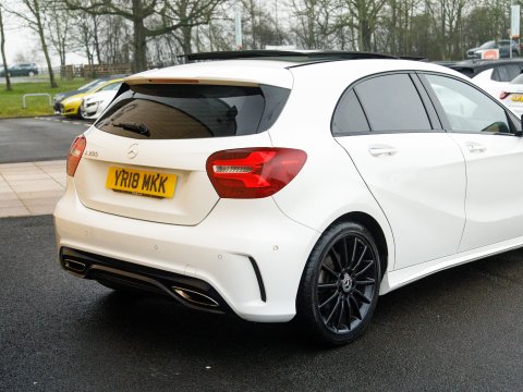 This 2018 Mercedes Benz A Class A200 AMG Line (Premium Plus) boasts exceptionally low mileage for its age, having covered just 46173 miles. As a Euro 6 compliant model, it features a 1.6 litre petrol engine and is presented in the sporty AMG Line trim. The Premium Plus Package enhances its appeal, bringing with it convenient features such as Headlamp Assist for automatic activation of the headlights, and a 180 degree reversing camera with parking guidelines to aid manoeuvrability. Inside, you will find THERMOTRONIC luxury automatic climate control, offering a two zone system with a clear display and Heated front Seats for personalised comfort. The opening, Panoramic Sunroof adds a light, airy feel to the interior, while the Sat Nav keeps you on track on those longer journeys.