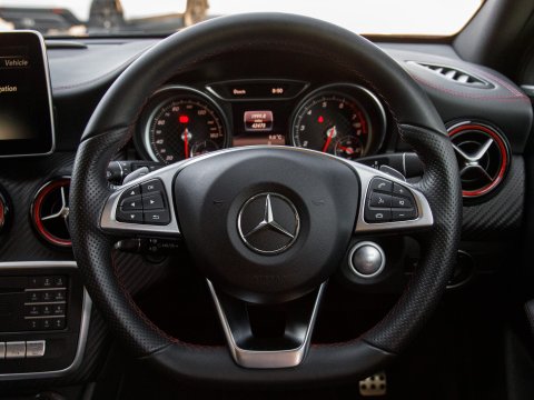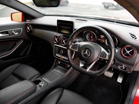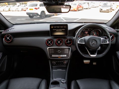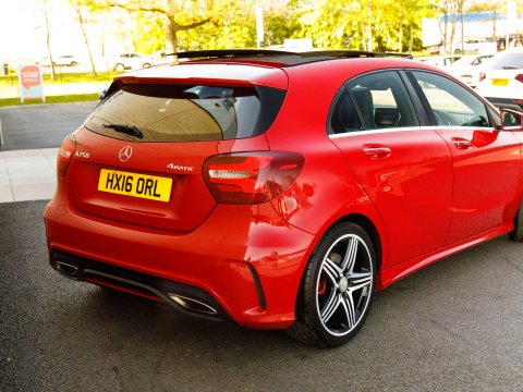 This 2016 Mercedes Benz A Class A250 AMG (Premium) boasts exceptionally low mileage for its age, having covered just 42,467 miles. This Euro 6 compliant, four wheel drive model is powered by a responsive 2.0 litre petrol engine, offering brisk acceleration from 0-62mph in a mere 6.3 seconds. Inside, you'll find premium comfort and technology, including electrically adjustable front seats with a memory function, and Thermotronic two zone automatic climate control. The A250 AMG (Premium) variant comes equipped with striking LED headlights and a sophisticated Harman Kardon Logic 7 surround sound system for an immersive audio experience. Parking is made effortless with a 180 degree reversing camera featuring parking guidelines and rear camera parking assistance. The Opening Panoramic Sunroof adds an open, airy feel to the interior.