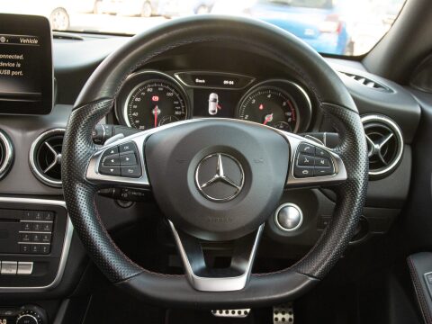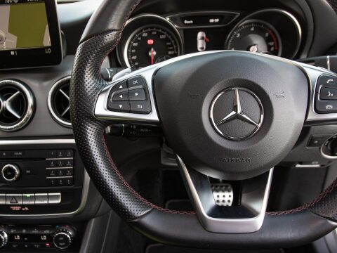 Discover this exceptional 2018 Mercedes Benz CLA220d AMG Line, boasting remarkably low mileage for its year at just 39,623 miles. This stylish coupe is presented in the desirable AMG Line trim, featuring a powerful yet efficient 2.1L diesel engine that meets Euro 6 emissions standards. Inside, you'll find a host of premium features designed for comfort and convenience, including THERMOTRONIC luxury automatic dual zone climate control and the advanced Audio 20 radio with Bluetooth connectivity. Navigating tight spaces is made effortless with the Parking Pilot system, complete with front and rear parking assistance, while the Headlamp Assist and LED High Performance headlamps with integrated daytime running lights ensure excellent visibility in all conditions. The panoramic sunroof floods the cabin with natural light creating an airy feel to the car.