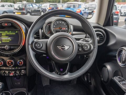 This 2017 MINI Hatch Cooper is a truly exceptional example, boasting remarkably low mileage for its age, having covered just 24,277 miles. As a Cooper variant, it is powered by an efficient 1.5 litre petrol engine, meeting Euro 6 emissions standards. This particular model is equipped with stylish 17 inch Cosmos alloy wheels in black, and benefits from advanced LED lighting for the headlights, daytime running lights, and tail lights, ensuring excellent visibility. Inside, you'll find a Sport leather steering wheel with multifunction controls, allowing for easy operation of the Visual Boost Radio and other key functions
