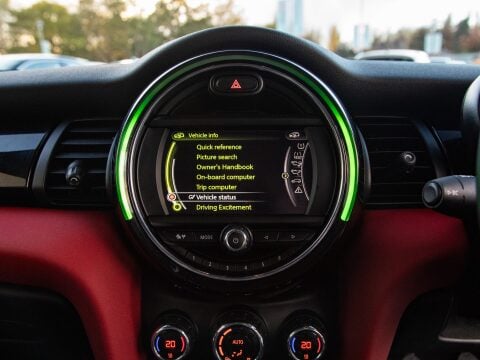 This 2015 MINI Hatch Cooper boasts exceptionally low mileage for its age, having covered just 36,408 miles, and has been cared for by only two owners. This particular example is a Cooper variant complete with the desirable Chilli Pack This mini is powered by an efficient 1.5 litre petrol engine that meets Euro 6 emissions standards. It features stylish 16 inch Victory Spoke alloy wheels in black and a Multifunction Steering Wheel for convenient control of the Visual Boost Radio. Inside, you'll find comfortable Black Pearl Cloth-Leatherette upholstery in Carbon Black, and the practical addition of a heated front windscreen.