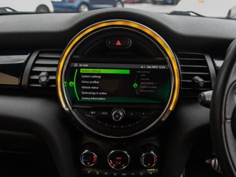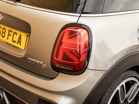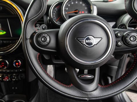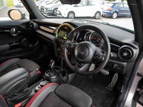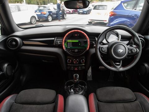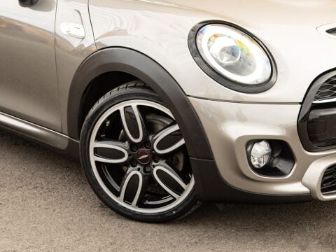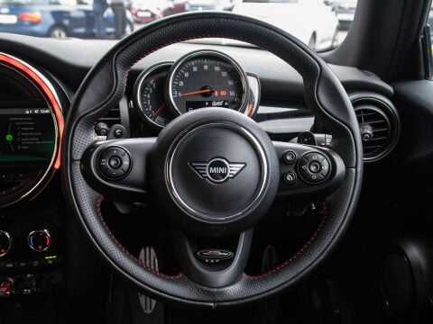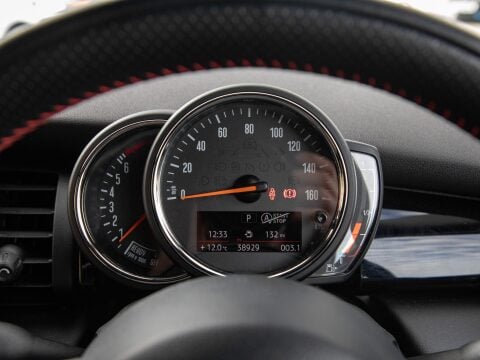 This 2018 MINI Hatch Cooper S Sport presents an exceptional opportunity with its remarkably low mileage of just 38,923 miles. Powered by a potent 2.0L petrol engine, this Euro 6 compliant model offers an exhilarating 0-60mph time of only 6.7 seconds. The Cooper S Sport trim is further enhanced by the desirable Navigation Plus Pack, which includes Apple CarPlay, Bluetooth connectivity, and wireless phone charging, alongside the Comfort Pack, providing climate control, rear parking assistance, and heated seats for an elevated driving experience. Complementing its sporty aesthetic are 18 inch John Cooper Works Cup Spoke alloy wheels fitted with run flat tyres, and a sophisticated interior featuring Piano Black surfaces and Dinamica Leather upholstery in Carbon Black. Parking sensors assist with manoeuvring.