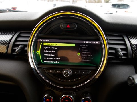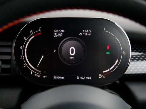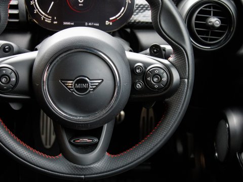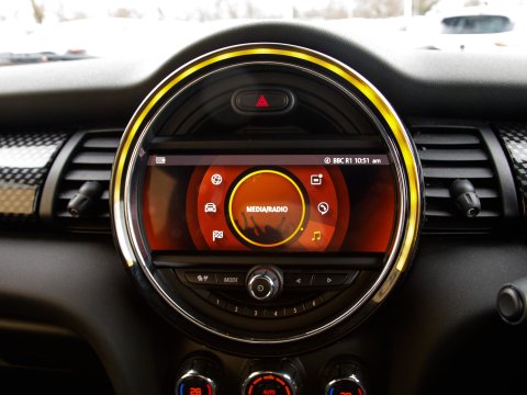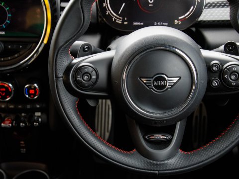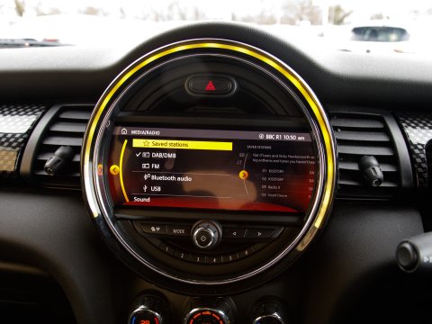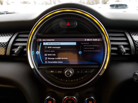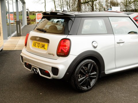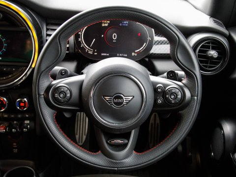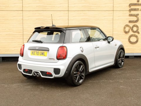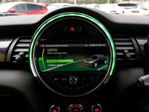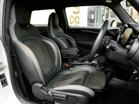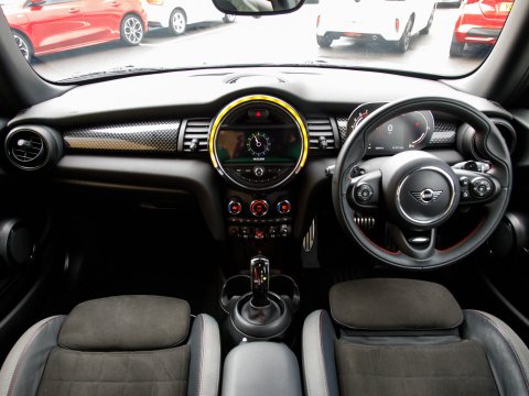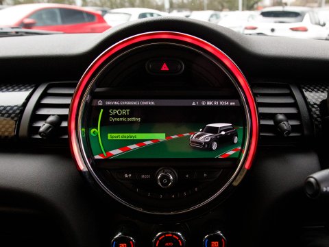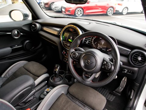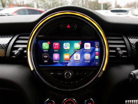 This 2020 MINI Hatch Cooper S Sport offers an exhilarating driving experience with its impressive acceleration. This particular vehicle is a 2020 model, presented in the Cooper S Sport trim and variant, powered by a 2.0 litre petrol engine and meeting Euro 6 emission standards. It comes equipped with the Navigation Plus Pack, which includes Apple CarPlay, Bluetooth connectivity, and wireless phone charging, alongside the Comfort Pack, featuring climate control, rear parking assistance sensors, and heated seats. The interior is finished in Dinamica Leather in Carbon Black, and further benefits from manual air conditioning and Bluetooth for compatible mobile phones with audio streaming.