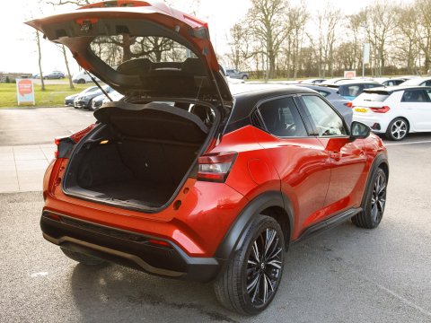 This 2021 Nissan Juke DIG-T Tekna+ is a superb example. This stylish crossover boasts a responsive 1.0 litre petrol engine, meeting Euro 6 emission standards. Inside, you'll find a modern cabin equipped with a Bose sound system, USB AUX socket and Bluetooth connectivity for seamless audio streaming and calls. Parking is made effortless with both front and rear parking sensors, further enhanced by a 360 degree camera system as part of the Advanced Safety Shield Pack. This pack also includes Blind Spot Assistance and Adaptive Cruise Control, ensuring a safer and more relaxed driving experience. The Juke is further distinguished by its striking LED headlights.