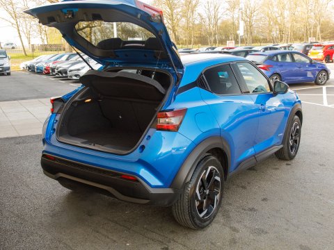 This 2023 Nissan Juke N Connecta presents an exceptional opportunity with its remarkably low mileage of just 3824 miles. This stylish compact SUV is powered by an efficient 1.6 litre petrol hybrid engine, meeting Euro 6 emission standards. It comes equipped with modern conveniences such as front parking sensors with parking assistance, and bright LED headlights for enhanced visibility. The intelligent key system offers keyless entry and walk away lock and approach unlock functions, complemented by an automatic climate control system to ensure a comfortable cabin environment. Seamless integration with your smartphone is provided through Apple CarPlay and Google Android Auto. Sat Nav will keep you on course for those longer journeys.