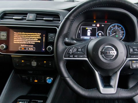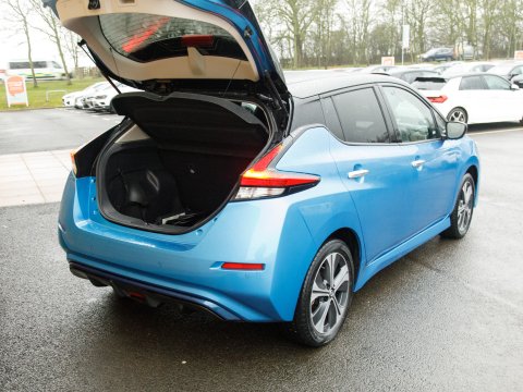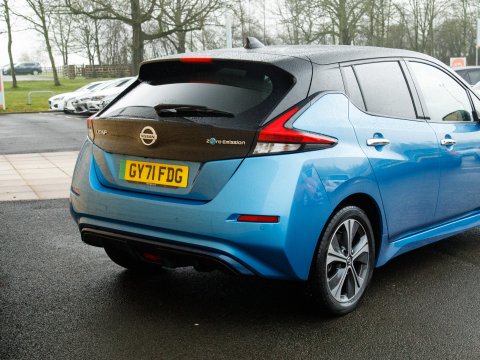 This 2021 Nissan Leaf e+ Tekna boasts exceptionally low mileage for its age, having covered just 19,206 miles. As an electric vehicle, this car has a 63 kWh battery with a battery health of 93%, it offers a substantial battery maximum range of 239 miles when new, making it a practical choice for both daily commutes and longer journeys. Charging at home with a 7kW charger takes approximately 11 hours and 30 minutes for a full charge, while rapid public charging can replenish the battery from empty to 80% in around 2 hours. This Tekna model comes equipped with convenient features such as Nissan i-Key and a Start Push Button for keyless entry and ignition, alongside Intelligent Cruise Control for adaptive driving assistance. Safety is enhanced with Blind Spot Intervention, and the LED Pack ensures excellent visibility with LED headlights. For an enjoyable driving experience, it features a BOSE Premium Audio System with 7 speakers. Climate Control keeps you comfortable while Parking Sensors ensure safety during manoeuvring. Apple CarPlay and Sat Nav keep you on track on longer journeys.