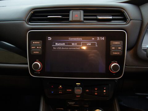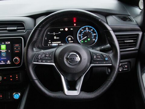 This 2022 Nissan Leaf Tekna presents an exceptional opportunity with its remarkably low mileage of just 13,215 miles. As an electric vehicle, it boasts a 40 kWh battery offering a maximum range of 168 miles when new. Charging is convenient, with a full charge at home using a 7kW charger taking approximately 7 hours and 30 minutes, while rapid public charging from empty to 80% can be achieved in around 1 hour and 20 minutes. This Tekna trim level comes equipped with advanced safety features including Blind Spot Intervention and Blind Spot Warning, alongside a BOSE Premium Audio System with 7 speakers for an enhanced listening experience. The integrated Tech Pack provides a 360 degree camera system with front and rear parking sensors, complemented by LED headlights for improved visibility. Satellite Navigation is included, to help guide you to your destination and its heated front seats will keep you warm along the way.