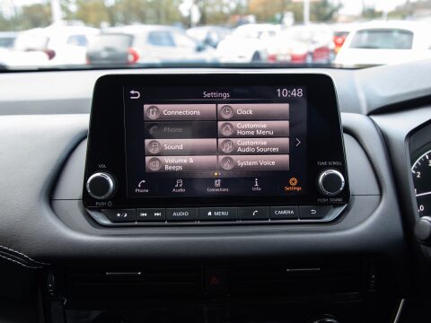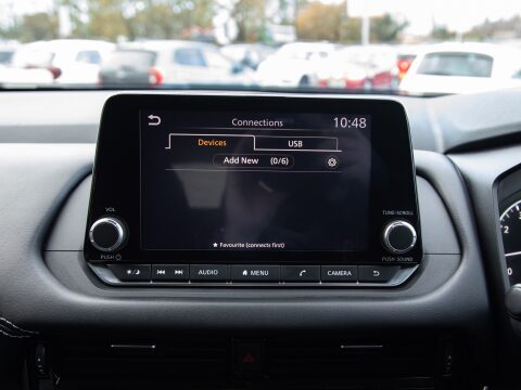 This 2022 Nissan Qashqai DIG-T Acenta Premium is a standout choice, having been owned by just one person and boasting remarkably low mileage for its year at only 18,759 miles. This Euro 6 compliant 1.3L Petrol Hybrid engine offers an efficient and modern driving experience. Inside, you'll find comfort and convenience with Automatic Dual Zone Climate Control, complete with a pollen filter, and seamless connectivity through Bluetooth with Audio Streaming and wired Apple CarPlay. The Intelligent Auto Headlights adjust automatically, while the Blind Spot Warning system adds an extra layer of safety. Sat Nav keeps you on track on those longer journeys.