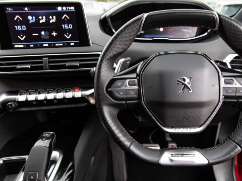 This 2019 Peugeot 3008 BlueHDi GT Line presents an exceptional opportunity with its remarkably low mileage of just 28,747 miles. As a Euro 6 compliant 1.5 litre diesel, this GT Line trim vehicle combines efficiency with sophisticated features. Experience enhanced visibility with power folding door mirrors that include blind spot detection and an auto dipping function for reverse gear, alongside the Visibility Pack which ensures automatic headlight activation. Inside, the cabin offers comfort with automatic dual zone climate control and a calming blue ambient lighting feature that complements the head up instrument panel. Parking is made simpler with Parking sensors and a 180 degree colour reversing camera complete with a wash system. Stay on track on those longer journeys with Sat Nav complete with Apple CarPlay.