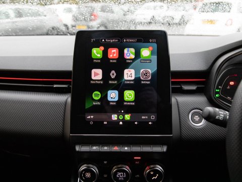 Discover this exceptional 2021 Renault Clio TCe RS Line, boasting remarkably low mileage for its age at just 12,405 miles. This Euro 6 compliant model is presented in the sporty RS Line trim, featuring a responsive 1.0 litre petrol engine. You'll appreciate the convenience of keyless entry and push button start with the handsfree keycard, alongside automatic climate control to keep you comfortable. Navigating and staying connected is effortless thanks to the 9.3 inch EASY LINK touchscreen, complete with navigation, Android Auto, Apple CarPlay, and Bluetooth. Both front and rear parking sensors with rear camera are included, offering peace of mind when manoeuvring.