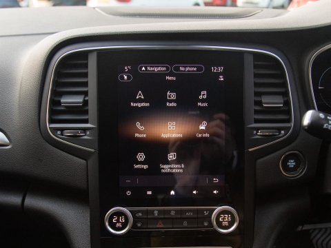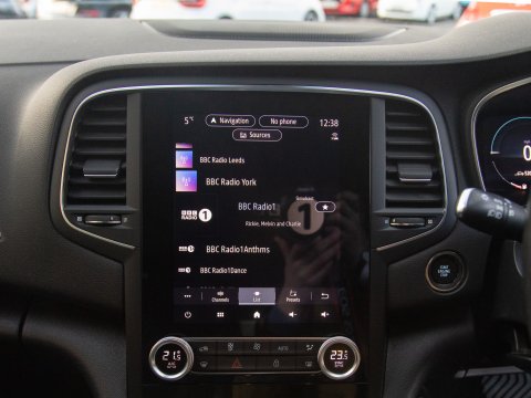 This 2021 Renault Megane E TECH Iconic is a Euro 6 compliant petrol plug in hybrid, offering an efficient and modern driving experience. It features a hands free keycard for keyless entry, allowing you to unlock and start the car with ease. Inside, you'll find automatic dual zone climate control to keep everyone comfortable, and the Easy Link navigation system comes complete with Android Auto and Apple CarPlay for seamless smartphone integration, alongside Bluetooth connectivity. For enhanced visibility, it is equipped with full LED headlights, and parking is made simpler with front and rear parking sensors.