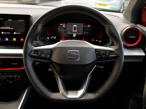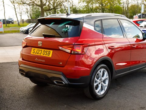 This 2023 SEAT Arona TSI FR presents an exceptional ownership proposition, having been driven only 16,765 miles by a single owner. This compact and stylish SUV is equipped with a responsive 1.0 litre petrol engine, meeting Euro 6 emission standards. The FR trim level enhances its sporty appeal, and you'll find practical features like rear parking sensors with parking assistance, dual zone climate control for personalised comfort, and a convenient wireless phone charger. For seamless connectivity, it includes Full Link smartphone integration, compatible with Android Auto and Apple CarPlay, alongside Bluetooth audio streaming and a handsfree system.