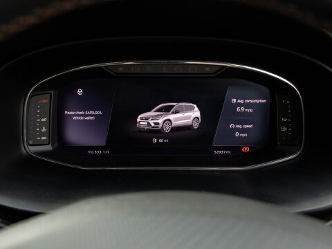 This 2020 SEAT CUPRA Ateca TSI is a remarkable example of performance and practicality, boasting a powerful 2.0 litre petrol engine and a responsive four wheel drive system. As a Euro 6 compliant vehicle, it meets stringent emission standards. This particular model comes equipped with a suite of advanced features designed to enhance your driving experience, including Park Assist for effortless self parking, dual zone climate control to ensure comfort for all occupants, and KESSY keyless entry and go for ultimate convenience. The full LED headlights provide excellent visibility, and the Convenience Pack ensures automatic headlight activation, making every journey smoother and safer. The performance capability, combined with its sophisticated all wheel drive system, offers a driving dynamic that surpasses many other vehicles in its class. Sat Nav assists on those longer journeys, while Apple CarPlay keeps you connected.