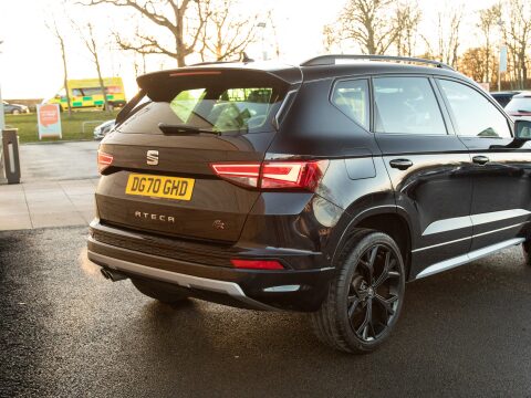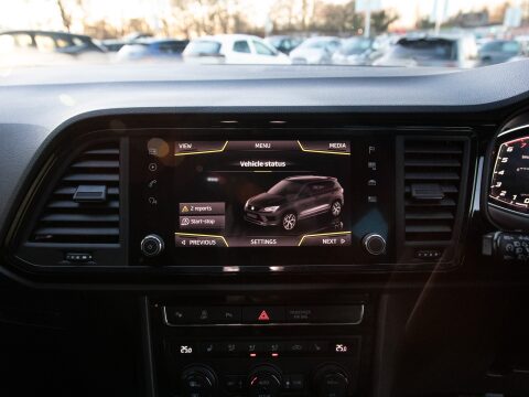 This 2020 SEAT Ateca TSI EVO FR Black Edition boasts exceptionally low mileage for its age, having covered just 19124 miles. This Euro 6 compliant 1.5 litre petrol engine is presented in the striking FR Black Edition trim, offering a compelling blend of style and practicality. Inside, you'll find the comfort of a Winter Pack with heated seats and dual zone climate control, ensuring a pleasant journey in any weather. The Convenience Pack includes automatic headlights, while full LED headlights provide excellent visibility. For effortless parking, this Ateca is equipped with front and rear parking sensors and Park Assist. Sat Nav keeps you on track on those longer journeys.
