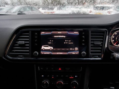 This 2019 SEAT Ateca TSI EVO FR Sport is a remarkable find, boasting exceptionally low mileage for its age at just 37883 miles. This Euro 6 compliant 1.5 litre petrol engine offers a responsive drive, reaching 0-60mph in a swift 8.6 seconds. The FR Sport trim ensures a stylish presence, complemented by full LED headlights for excellent visibility. Inside, you'll appreciate the convenience of Park Assist with front and rear sensors, making parking effortless, while dual zone climate control allows for personalised comfort. For those chilly mornings, the winter pack includes heated seats, and staying connected is simple with Full Link smartphone integration, supporting both Android Auto and Apple CarPlay. Sat Nav keeps you on track for those long journeys.