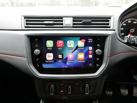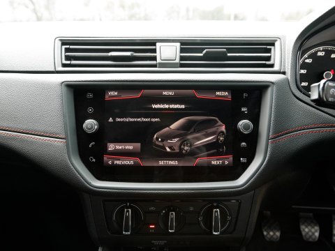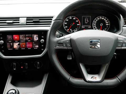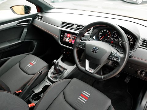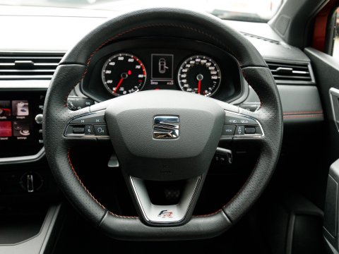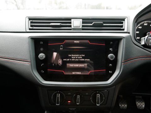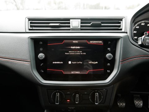 Boasting exceptionally low mileage for its age, this 2020 SEAT Ibiza TSI FR presents a superb ownership opportunity. With only one previous owner and a mere 23,720 miles on the clock, this Euro 6 compliant 1.0 litre petrol model is in excellent condition. It comes equipped with striking LED headlights featuring dynamic range control, ensuring optimal visibility. Stay connected and entertained with Full Link smartphone integration, compatible with both Android Auto and Apple CarPlay, while the Bluetooth audio streaming and handsfree system keep your journeys seamless. Comfort is assured thanks to the dual zone climate control, and the convenience of auto headlights means you never have to worry about switching them on.