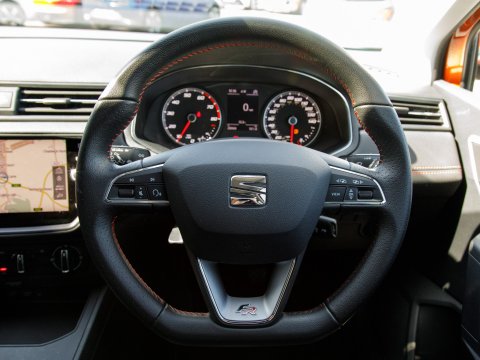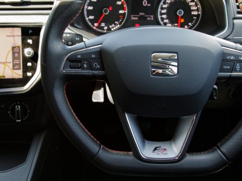 This 2019 SEAT Ibiza TSI FR presents an exceptional opportunity with its remarkably low mileage of just 28,963 miles. This Euro 6 compliant 1.0 litre petrol model, in the sporty FR trim, offers a compelling blend of efficiency and performance. Inside, you'll find modern conveniences such as air conditioning and a handsfree Bluetooth system for seamless audio streaming and calls. The integration of Full Link smartphone connectivity, supporting both Android Auto and Apple CarPlay, ensures your digital life stays connected on the go, while auto headlights with full LED illumination provide excellent visibility and convenience.