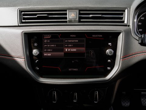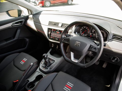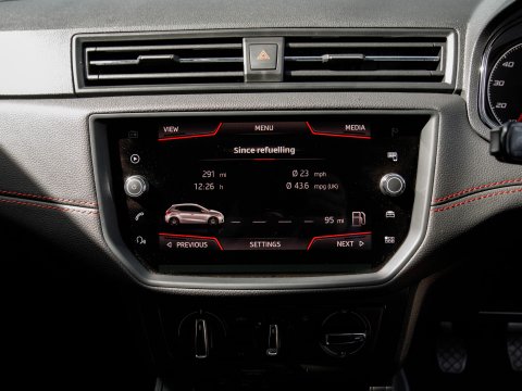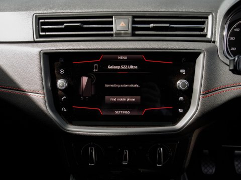 Discover this 2019 SEAT Ibiza TSI FR with exceptionally low mileage for its age, having covered just 30,629 miles. This Euro 6 compliant model boasts a 1.0 litre petrol engine and comes in the sporty FR trim. You'll appreciate the convenience of auto headlights, including automatic activation, and full LED headlights for enhanced visibility. Stay on course with Sat Nav and entertained with Full Link smartphone integration, supporting both Android Auto and Apple CarPlay, alongside Bluetooth audio streaming and a handsfree system. The addition of parking sensors will ensure manoeuvrability is effortless while your comfort is assured with air conditioning, and the spacious boot offers ample room for all your needs.
