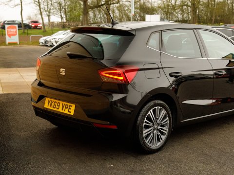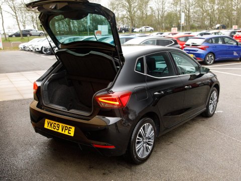This 2019 SEAT Ibiza TSI XCELLENCE is a superb example of a well maintained and popular hatchback. It boasts a responsive 1.0 litre petrol engine and meets Euro 6 emissions standards. This XCELLENCE trim level comes equipped with a host of desirable features, including full LED headlights for excellent visibility, KESSY keyless entry and go for ultimate convenience, and dual zone climate control to ensure comfort for all occupants. Enjoy your favourite music and take calls safely on the move thanks to the integrated Apple CarPlay and Bluetooth audio streaming and handsfree system. Parking is made simple with the rear parking sensors and assistance system, while Sat Nav keeps you on track on those longer journeys. Climate control keeps you comfortable in any weather.