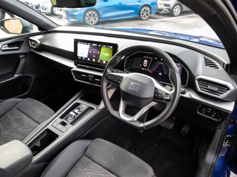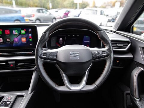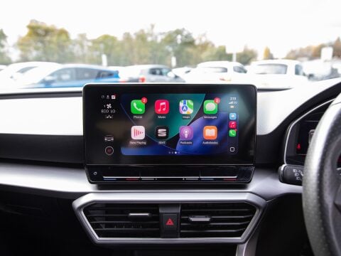 This 2021 SEAT Leon eHybrid FR Sport presents a compelling proposition with its remarkably low mileage of just 45791 miles for its age. This particular model boasts a 1.4L Petrol Plug-in Hybrid engine, adhering to Euro 6 emission standards. Its FR Sport trim level ensures a dynamic driving experience, complemented by a comprehensive Media System Plus with Navigation and Bluetooth connectivity. The vehicle also features advanced lighting, including separate daytime running lights with automatic headlight control and a coming home function, alongside LED headlights with dynamic turn signals. Comfort is further enhanced by a powered driver's seat with memory function and manual height adjustment for the passenger, as well as three zone climate control. The SEAT Leon eHybrid FR Sport is further enhanced by its Park Assist system, which includes front and rear parking sensors, making manoeuvring in tight spaces effortless.