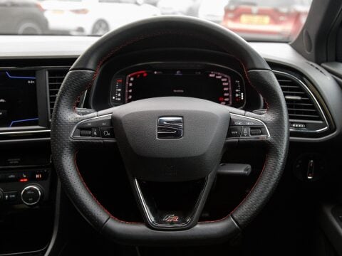 This 2020 SEAT Leon TSI EVO FR Black Edition boasts exceptionally low mileage for its age, having covered just 30545 miles. This Euro 6 compliant 1.5 litre petrol engine is presented in the sporty FR Black Edition trim, offering a refined driving experience. Inside, you'll find the Media System Plus with Bluetooth connectivity, allowing for seamless integration of your devices. Comfort is assured with the addition of Heated Seats. The Convenience Pack Plus ensures automatic headlights are always on when needed, complemented by full LED headlights for superior visibility. Parking is made effortless with front and rear parking sensors, and you can maintain your ideal cabin temperature with the dual zone climate control. Sat Nav will keep you on track for those long journeys.