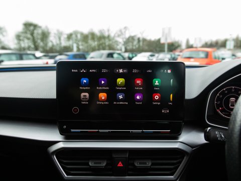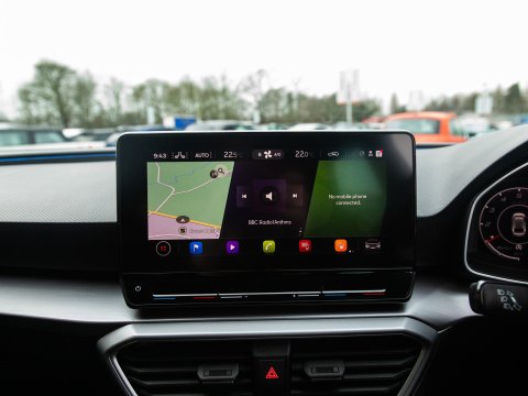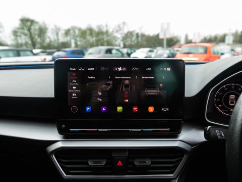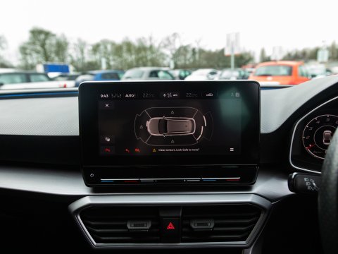 This 2021 SEAT Leon TSI EVO FR Sport is a standout choice, having been owned by just one person and boasting exceptionally low mileage for its age at only 27,990 miles. This Euro 6 compliant 1.5 litre petrol model offers a refined driving experience, enhanced by its FR Sport trim. You'll appreciate the advanced LED headlights, complete with dynamic turn signals and automatic coming home functionality, ensuring excellent visibility. Inside, comfort is paramount with a powered driver's seat featuring memory settings and a heated, flat bottomed, perforated leather steering wheel. The three zone climate control allows everyone to find their perfect temperature, making every journey a pleasure. Parking Sensors, Complete with Rear Parking Camera ensure safety during those tighter manoeuvres, while Apple CarPlay Keeps you connected on the move.