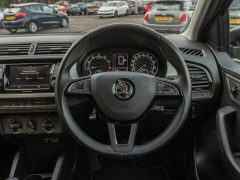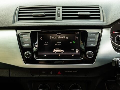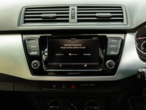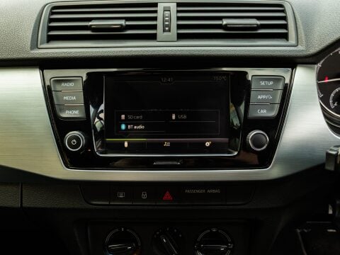 Discover this 2019 Skoda Fabia TSI SE with exceptionally low mileage, having covered just 31,799 miles. This Euro 6 compliant 1.0 litre petrol model, presented in the SE trim, offers a blend of practicality and modern convenience. Inside, you'll find manual air conditioning to keep you comfortable, and the Swing radio system featuring a 6.5 inch touchscreen display with Bluetooth connectivity for your entertainment and communication needs. Parking is made easier with acoustic rear parking sensors, providing audible assistance when manoeuvring.