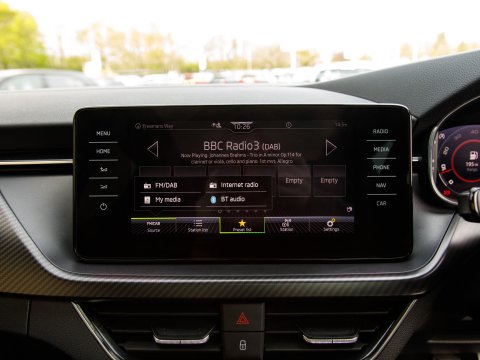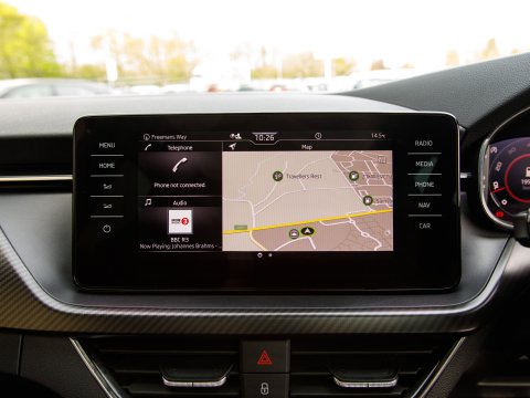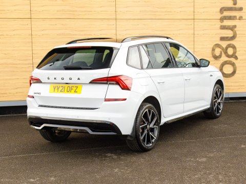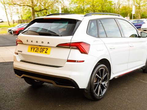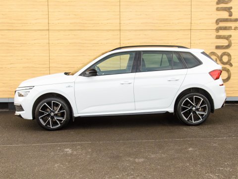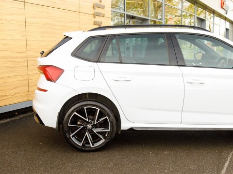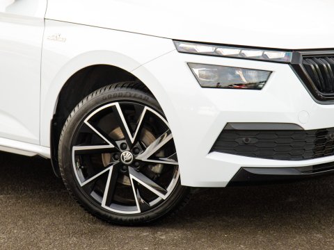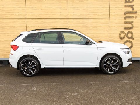 This 2021 Skoda Kamiq TSI Monte Carlo offers a superb blend of style and practicality, featuring a panoramic sunroof with striking black roof rails. This Euro 6 compliant 1.5 litre petrol engine is presented in Monte Carlo trim, a popular choice for its sporty aesthetic. Inside, you'll find manual air conditioning with a pollen filter to keep the cabin fresh, and rear parking sensors to aid with manoeuvring. Connectivity is seamless thanks to Wireless Smartlink, which includes Android Auto and Apple CarPlay, while full LED headlights provide excellent visibility.