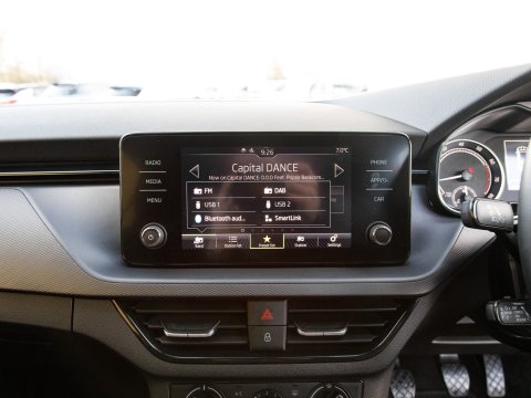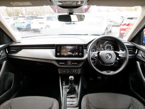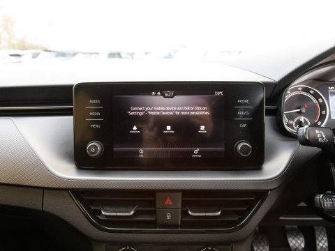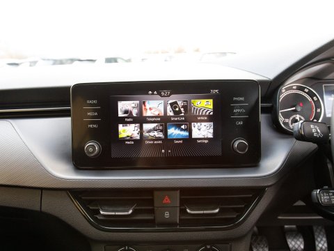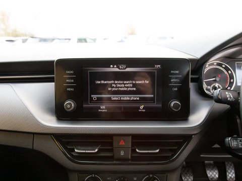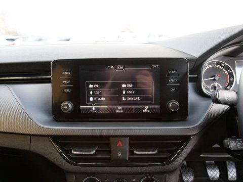 This 2022 Skoda Kamiq TSI SE presents an exceptional opportunity with its remarkably low mileage of just 24,755 miles, having been cherished by only one owner since new. This Euro 6 compliant 1.0 litre petrol model combines practicality with modern convenience, featuring basic LED headlights with integrated LED daytime running lights for enhanced visibility. Inside, you'll find Wireless Smartlink, seamlessly connecting your Android Auto or Apple CarPlay devices, alongside Bluetooth connectivity for effortless calls and media streaming. Comfort is assured with manual air conditioning and a pollen filter, while rear parking sensors provide added confidence when manoeuvring.