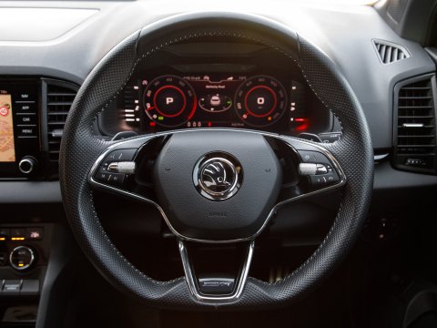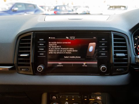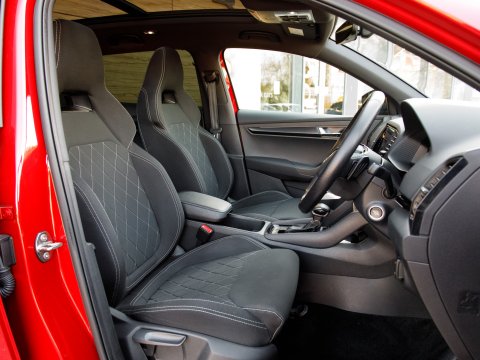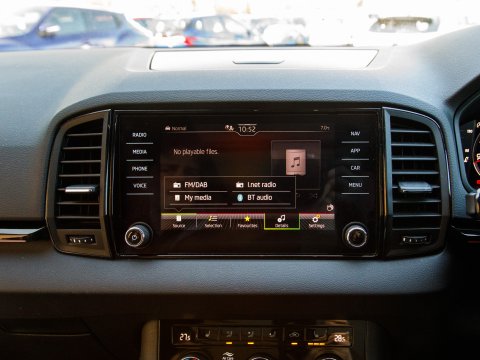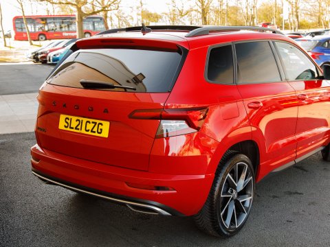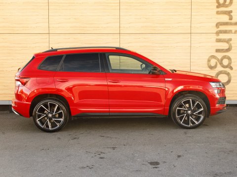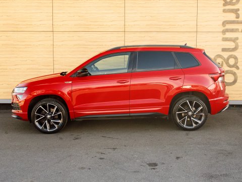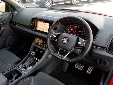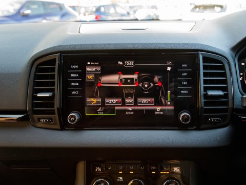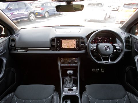This 2021 Skoda Karoq TSI SportLine is a superb example of a well maintained family SUV. It boasts a 1.5 litre Euro 6 petrol engine and comes in the desirable SportLine trim. You'll find convenience features such as DAB digital radio, Bluetooth connectivity and Apple CarPlay, making every journey more enjoyable. The light and rain sensor, coupled with an auto dimming rear view mirror, ensures optimal visibility, while automatic headlight control means you never have to worry about switching your lights on. For added peace of mind when parking, a rear view camera is included, supported by rear parking assistance. Inside, the Panoramic Sunroof floods the cabin with natural light, while the dual zone climate control air conditioning allows everyone to set their preferred temperature.