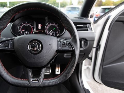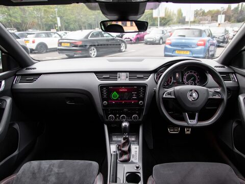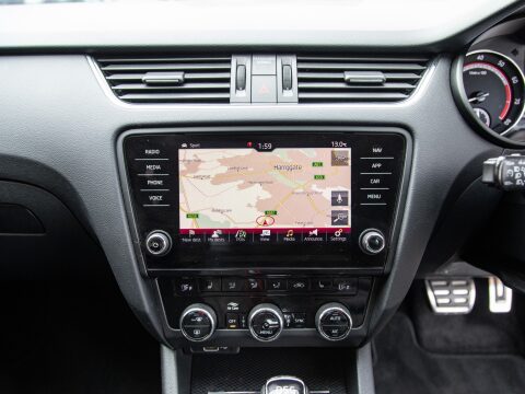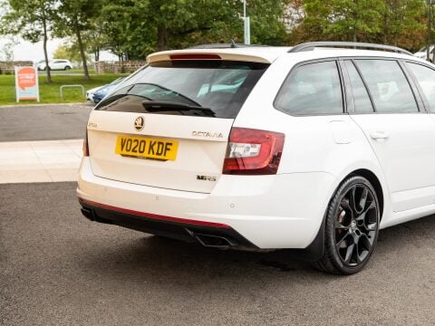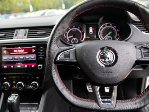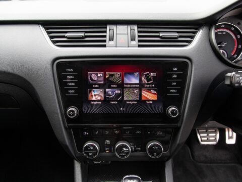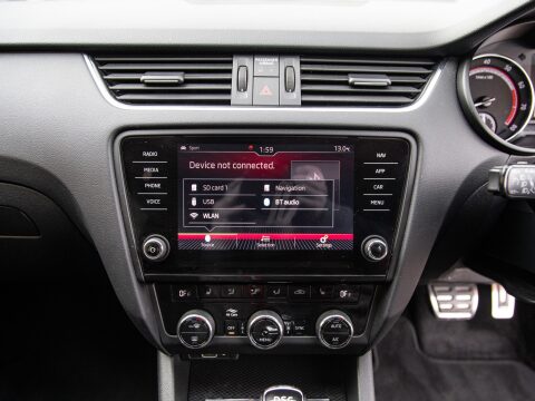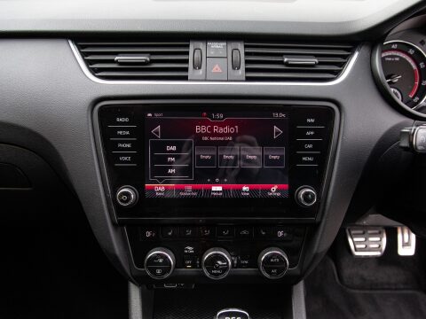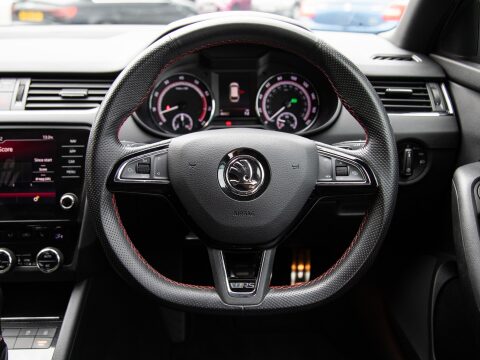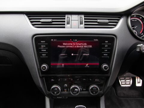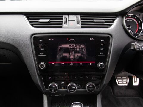 This 2020 Skoda Octavia TSI vRS Challenge is a superb example of a performance focused family car. Powered by a potent 2.0 litre petrol engine, this Euro 6 compliant model offers an exhilarating 0-60mph time of just 6.8 seconds, demonstrating its dynamic capabilities. The vRS Challenge trim level ensures a wealth of desirable features, including full LED headlights with adaptive front lighting and LED daytime running lights for enhanced visibility. Inside, you'll find comfort and convenience with heated front seats, dual zone air conditioning with a humidity sensor, and an electrically adjustable driver's seat complete with memory function and lumbar support. Parking is made effortless thanks to acoustic front and rear parking sensors.