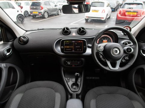 This 2021 Smart forfour Passion Advanced Electric boasts exceptionally low mileage for its age, having covered just 8990 miles. As an electric model, it offers a clean and efficient driving experience with a total battery capacity of 18 kWh with a battery health of 99%, providing a maximum range of 79 miles when new. The Smart Media System, featuring Android Auto, Apple CarPlay and Bluetooth connectivity, keeps you entertained and connected on the go, while the rear parking aid with acoustic warning makes manoeuvring simple and stress free.