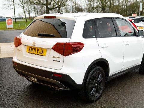 Discover this 2021 Suzuki Vitara SZ T, a stylish and capable compact SUV that offers an engaging driving experience. Powered by an efficient 1.4 litre petrol hybrid engine, this Euro 6 compliant model is designed for modern driving needs. Inside, you'll find the Smartphone Linkage Display Audio system, seamlessly integrating your Android Auto or Apple CarPlay for easy access to your favourite apps and navigation. Stay connected on the go with the integrated Bluetooth system, while advanced safety features like the Blind Spot Monitor and Adaptive Cruise Control provide added peace of mind. Automatic headlamps ensure optimal visibility in varying conditions. Sat Nav keeps you on track on those longer journeys, while the rear parking camera eases manoeuvring.