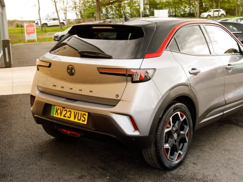 This 2023 Vauxhall Mokka Electric GS Line presents a superb ownership proposition, having been cherished by just one owner from new and boasting exceptionally low mileage of only 17804 miles. This all electric model features a 50 kWh battery offering a maximum range of 209 miles, with a full charge at home on a 7kW charger taking approximately 7 hours and 30 minutes. For quicker top ups, it can reach 80% charge in as little as 30 minutes at a compatible public charging station. The GS Line trim comes equipped with a 10in Multimedia Navi Pro system supporting Android Auto and Apple CarPlay, alongside Bluetooth connectivity. Further enhancing your driving experience are LED headlights for superior visibility, rear parking distance sensors and a panoramic rear view camera to assist with manoeuvring.