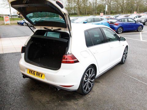 This 2016 Volkswagen Golf TSI GTI presents an exceptional ownership proposition with its remarkably low mileage of just 29,233 miles, having been cherished by only one owner from new. Under the bonnet, a potent 2.0 litre petrol engine powers this Euro 6 compliant hatchback, delivering an exhilarating 0-60mph time of only 6.5 seconds. Coming equipped with the 19in Santiago wheels as well as the GTI trim level that ensures a host of desirable features, including advanced Bi-Xenon dipped and main beam headlights with distinctive LED daytime running lights, and convenient keyless entry. For enhanced visibility and ease of use, it is equipped with a dusk sensor for automatic driving lights and both front and rear parking sensors to assist with manoeuvring. Sat Nav will keep you connected and on course for those longer journeys.
