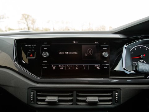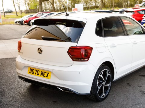 This 2020 Volkswagen Polo TSI R Line presents an exceptional ownership proposition, having been meticulously maintained. With a remarkably low mileage of just 22,350 miles, this Euro 6 compliant model boasts a responsive 1.0 litre petrol engine. Its R Line trim level ensures a sporty aesthetic and comes equipped with practical features such as front and rear parking sensors, complete with parking assistance, and manual air conditioning for your comfort. Sat Nav keeps you connected and on course for those longer journeys. The convenience of automatic headlights, which are part of the Light and Sight Pack, is also included, alongside halogen clear headlights with separate daytime running lights.