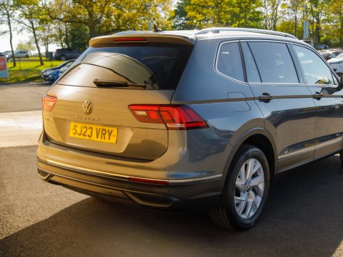 This 2023 Volkswagen Tiguan Allspace TSI Life offers exceptional value with only one owner and a remarkably low mileage of 19,602 miles. This Euro 6 compliant 1.5 litre petrol model provides seating for seven, making it a versatile choice for families. It comes equipped with advanced LED headlights for clear visibility, a Comfort mobile phone interface featuring inductive charging for effortless power, and a multifunction front facing camera that aids with parking. You'll also benefit from Park Distance Control in both the front and rear, and a three zone automatic climate control system with Air Care, an enhanced air filter, and independent rear controls for personalised comfort. Sat Nav keeps you on track on those longer journeys.