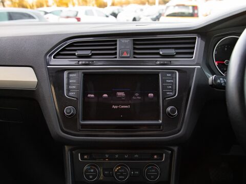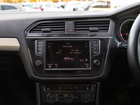 This 2017 Volkswagen Tiguan TDI SE Navigation presents an exceptional opportunity with its remarkably low mileage of just 45,074 miles. This four wheel drive model is powered by an efficient 2.0 litre diesel engine, meeting Euro 6 emission standards. It comes equipped with Driver Profile Selection, allowing you to choose between Eco, Normal, and Sport driving modes to suit your preference. For added convenience, it features front and rear parking sensors with parking assistance, and Adaptive Cruise Control to help manage your speed on longer journeys. The Composition Media System includes Bluetooth connectivity, and the Dusk Sensor automatically activates the headlights when light levels drop. Satellite Navigation (Sat Nav) is also part of the specification keeping you connected and on track on those unfamiliar journeys.